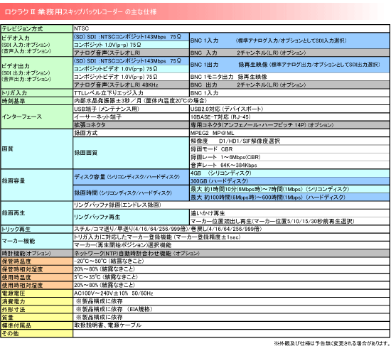 録再生映像出力 NTSCコンポジット 1チャンネル出力(標準)/SDI(SD:NTSCコンポジット 143Mbps)出力(オプション※1) |